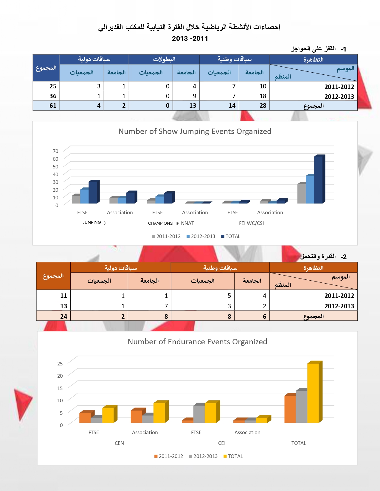 - إحصاءات الأنشطة الرياضية خلال الفترة النيابية للمكتب الفديرالي 2011-2013