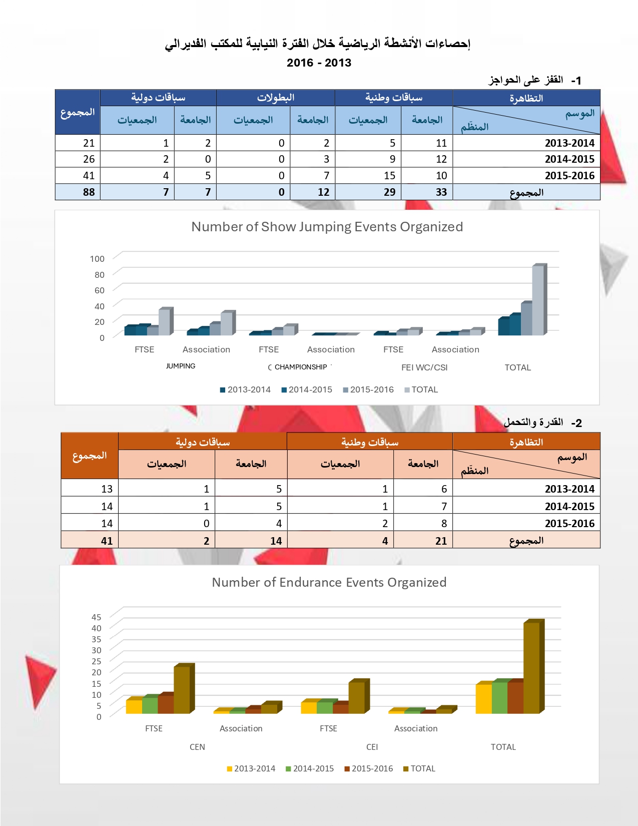 - إحصاءات الأنشطة الرياضية خلال الفترة النيابية للمكتب الفديرالي 2013-2016