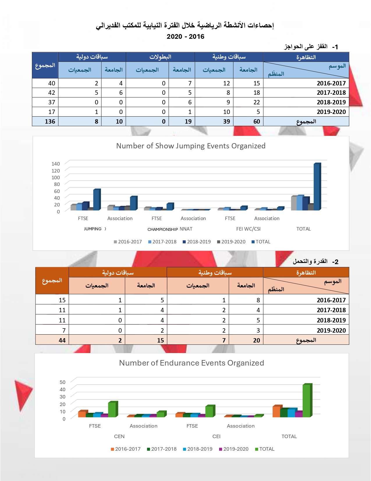 - إحصاءات الأنشطة الرياضية خلال الفترة النيابية للمكتب الفديرالي 2016-2020