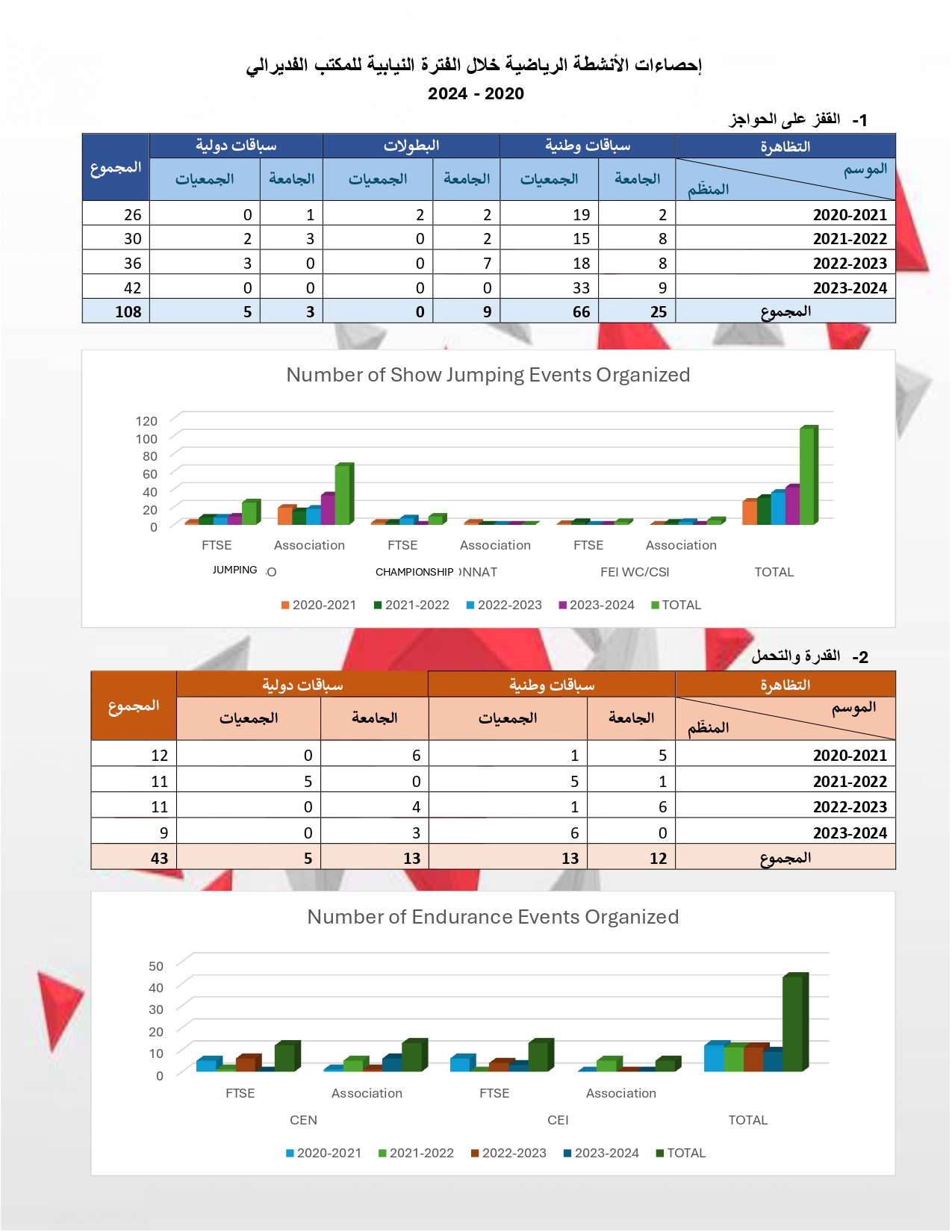 - إحصاءات الأنشطة الرياضية خلال الفترة النيابية للمكتب الفديرالي 2020-2024