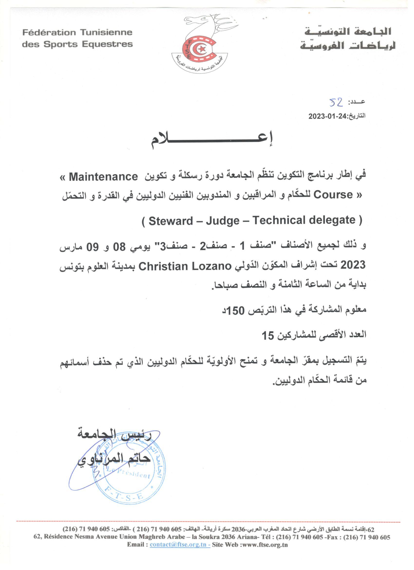 FEI ENDURANCE COURSE FOR JUDGE-STEWARDS- TD : MAINTENANCE